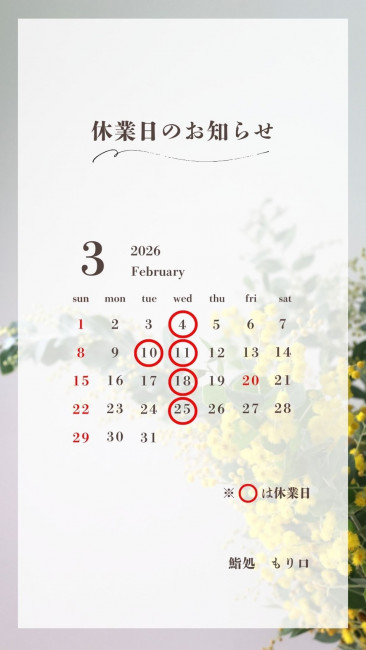 3月の営業日についてお知らせ致します。